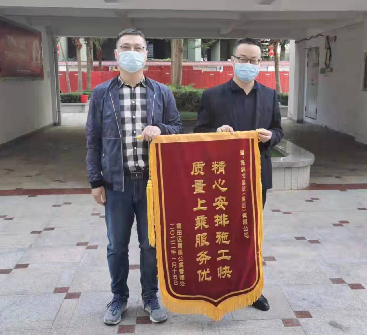 2022年1月21日,福田區(qū)青蓮公寓管理處有關同志向福田區(qū)第七期優(yōu)質飲用水入戶工程(第五批)施工總承包項目部贈送“精心安排施工快 質量上乘服務優(yōu)”的錦旗,項目經(jīng)理毛浣林代表項目部接受錦旗。此外,本項目施工范圍內的部分小區(qū)向其他參建方贈送錦旗。 ...